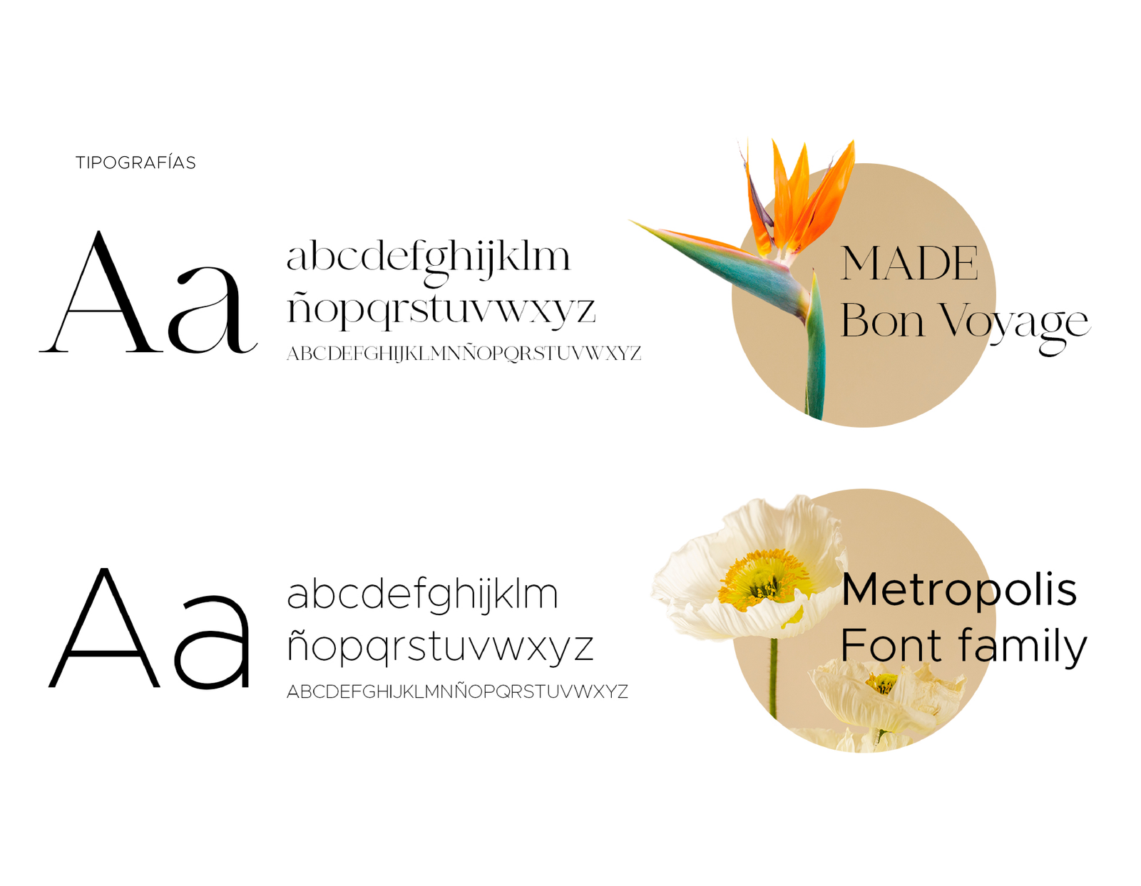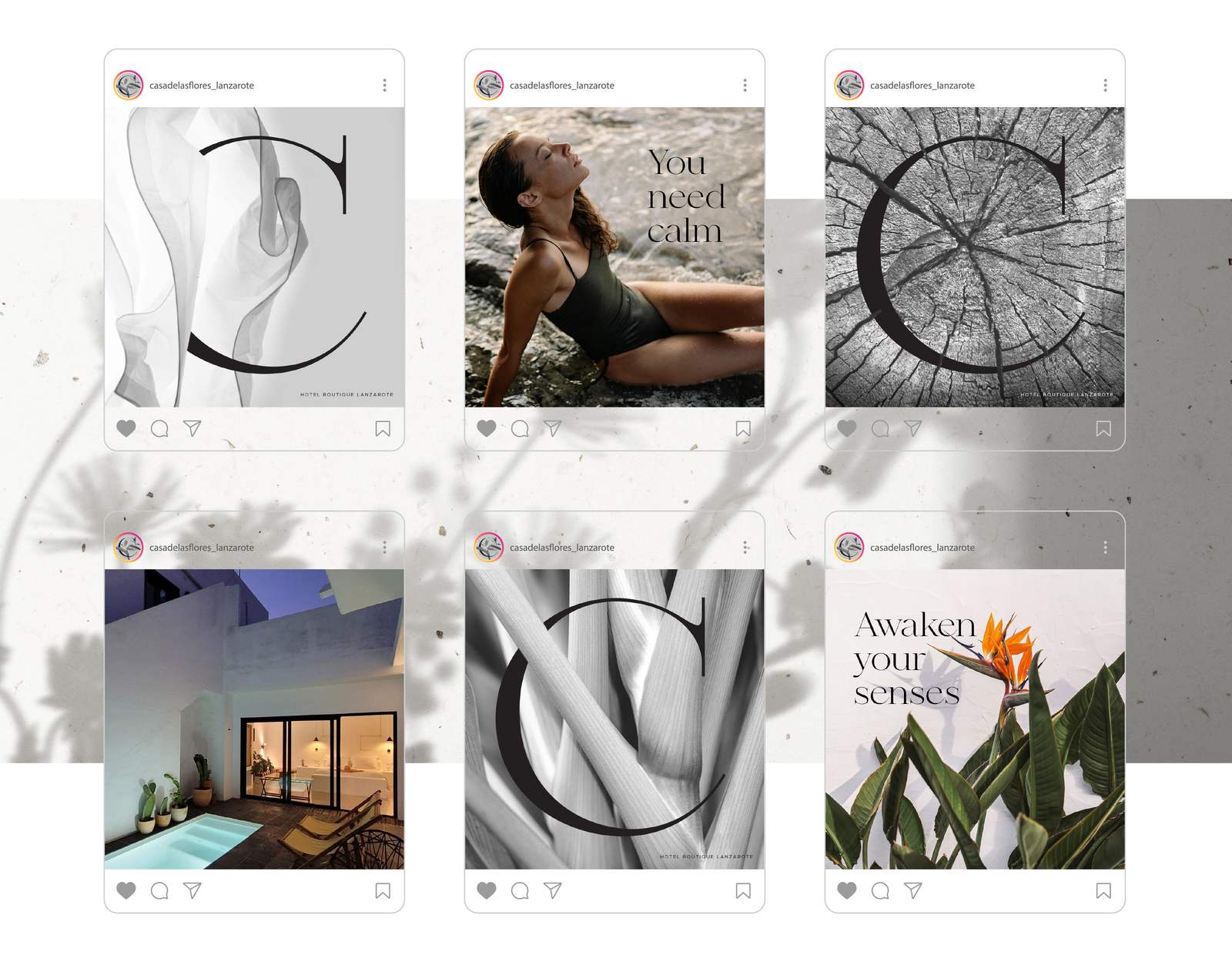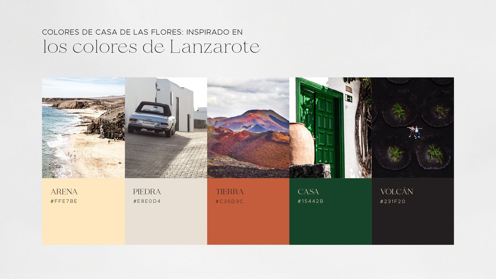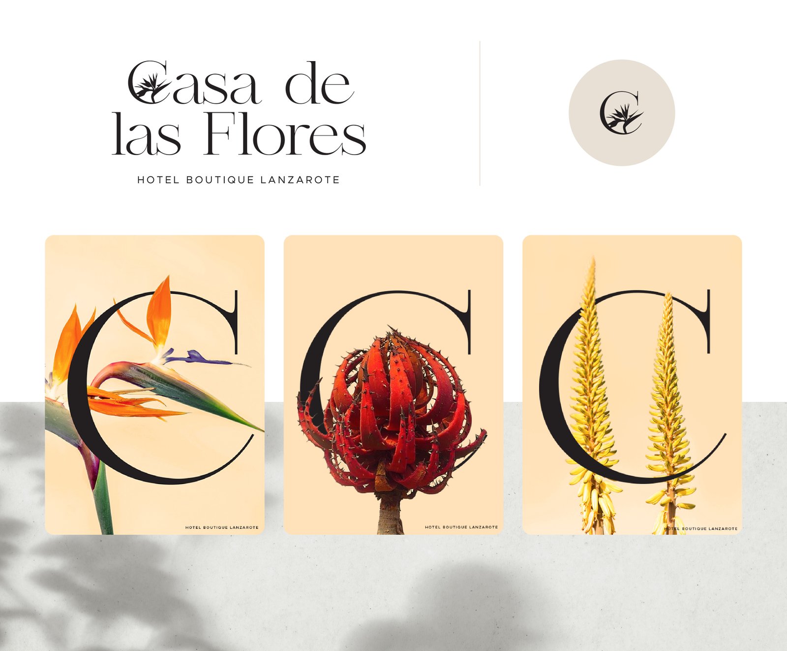 The Solution: To address these needs, the solution is branding that visually incorporates the brand story. I used the iconic Bird of Paradise, a distinctive flower of Lanzarote, as the central symbol to represent all of Casa de las Flores' flowers. The serif typography played a crucial role in merging the traditional and the contemporary, providing a classic touch with unique shapes adjusted for the logotype. The brand construction was based on the colors of the island, the local flora and strategic photographs to effectively communicate the fundamental pillars of the brand.