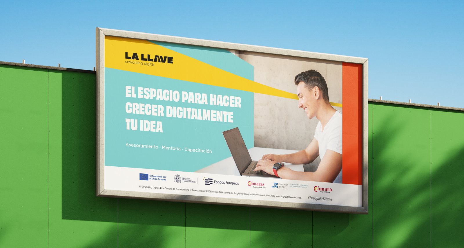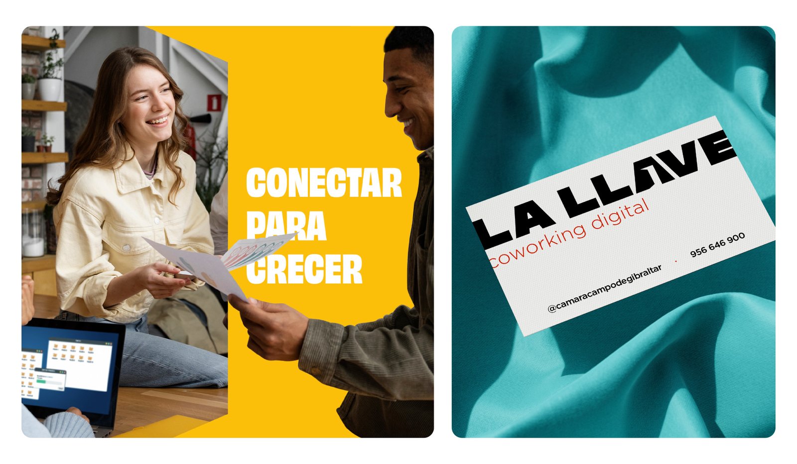 The Challenge: of this project was to develop a strong, expressive and dynamic brand identity for the new coworking space of the Campo de Gibraltar Chamber of Commerce. The brand had to attract entrepreneurs and pymes, inviting them to a collaborative space where, in addition to working in a shared environment, they would receive advice and mentoring to develop their new projects.